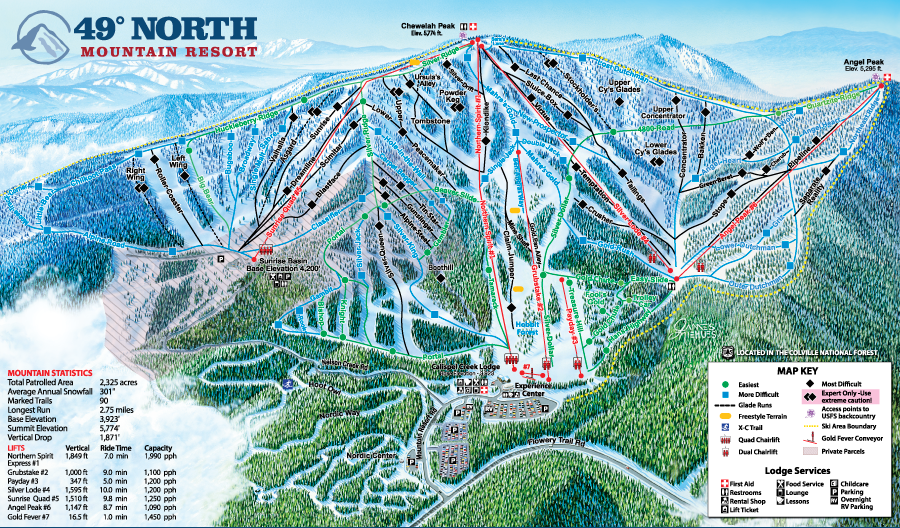49 Degrees North Mappa pisteQui troverai mappe sciistiche per 49 Degrees NorthClicca per ingrandire la mappa delle piste